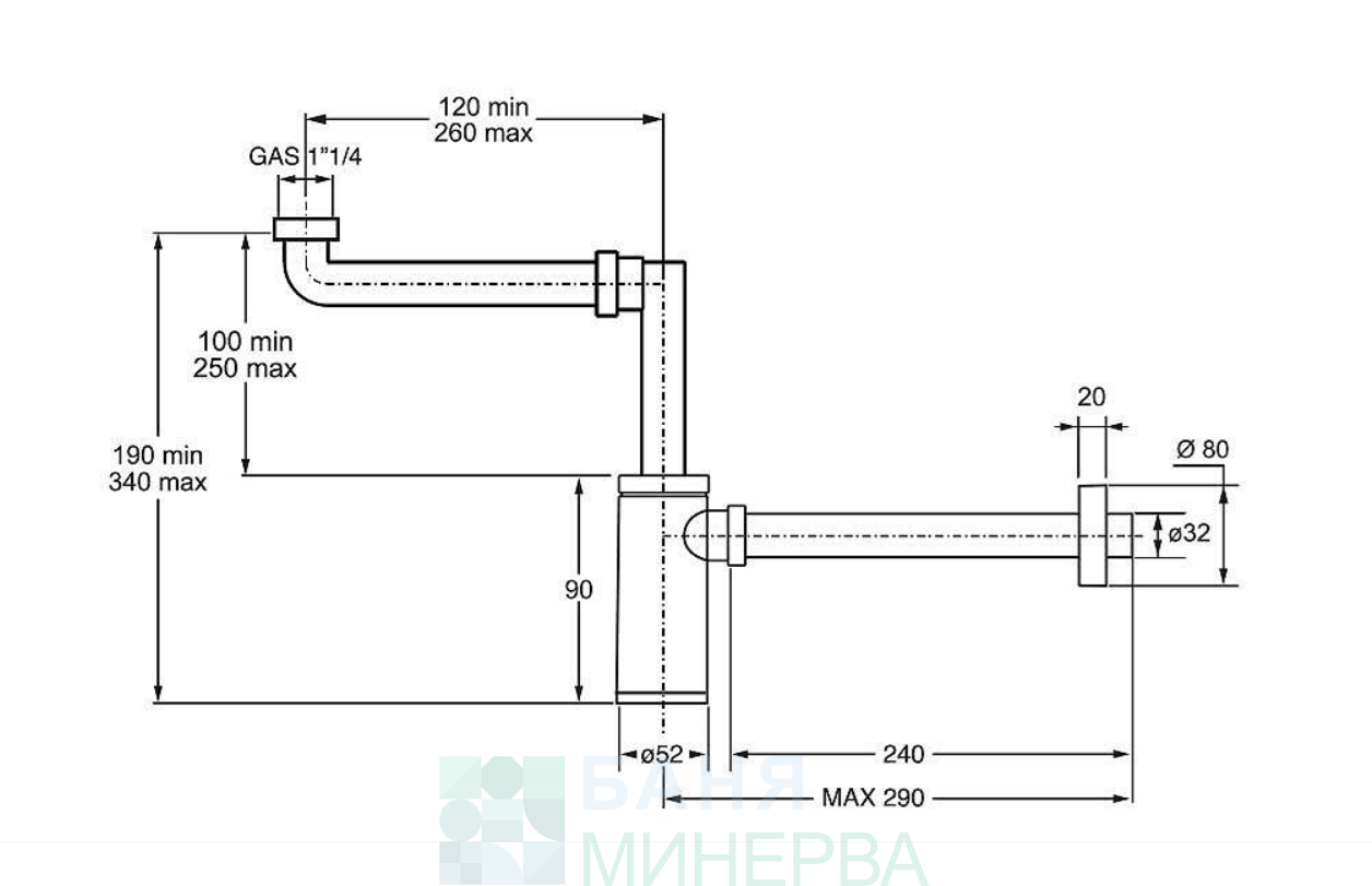 Сифон за мивка спестяващ място KING BONOMINI 0595SP25K7