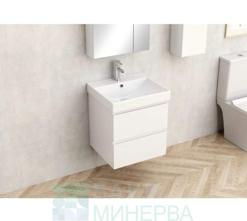 PVC шкаф за баня AMBROGIO-60 9048-60W с умивалник 5053W-2NEW