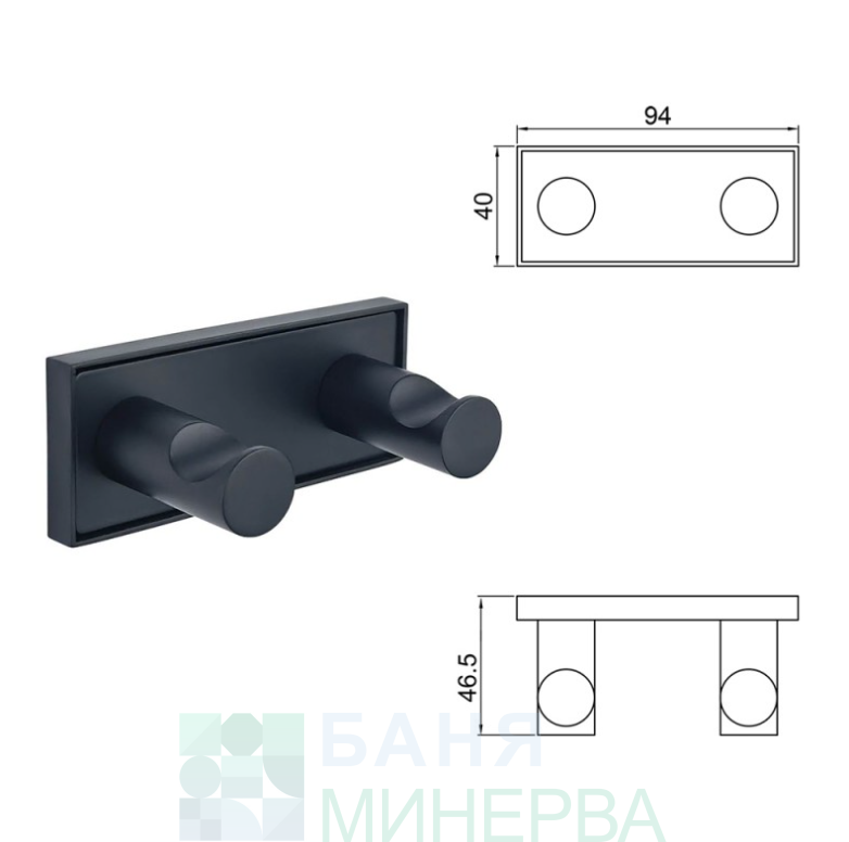 MODENA BLACK MATT Двойна закачалка 3853-2BM Inter Ceramic