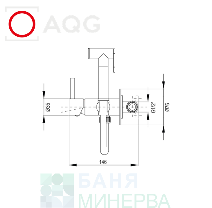 AQG TAUS 34TAU0011220 Gun Metal Хигиенен душ с вграден смесител
