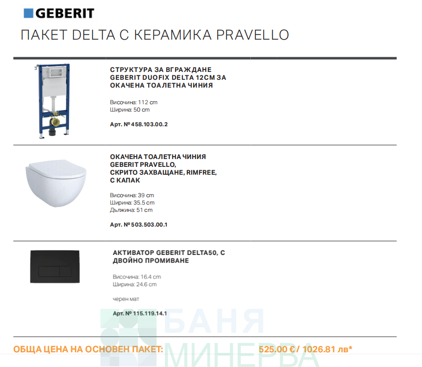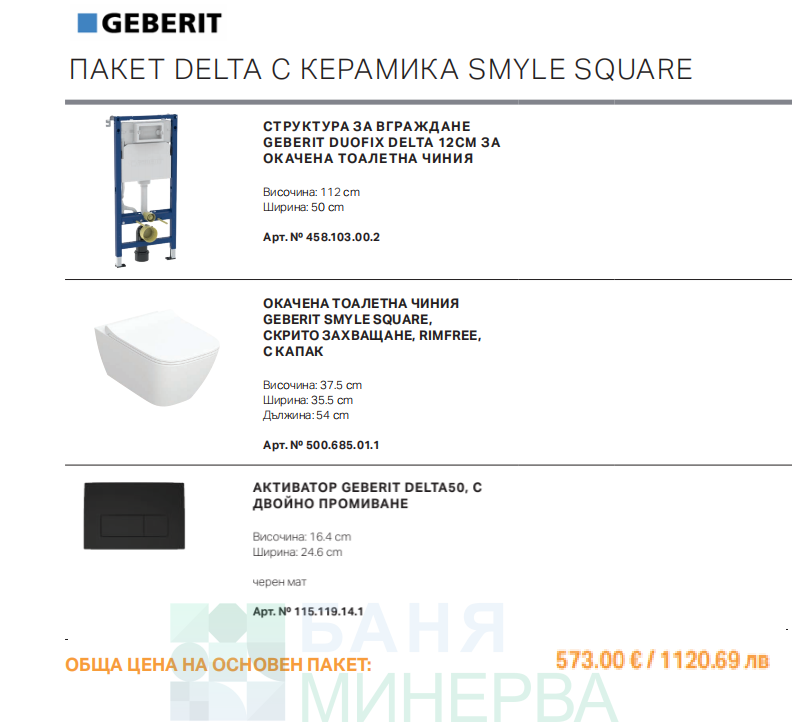 GEBERIT DUOFIX DELTA С ОКАЧЕНА ТОАЛЕТНА ЧИНИЯ SELNOVA PREMIUM с хром бутон ПАКЕТ 2026