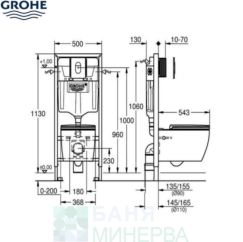 GROHE 103849SH00 Solido 4 в 1 Комплект Структура за вграждане и Тоалетна чиния