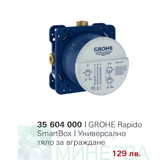 - тяло за вграждане 35 604 000 GROHE Rapido SmartBox Универсално : 129,00 лв-16% =108,36 лв