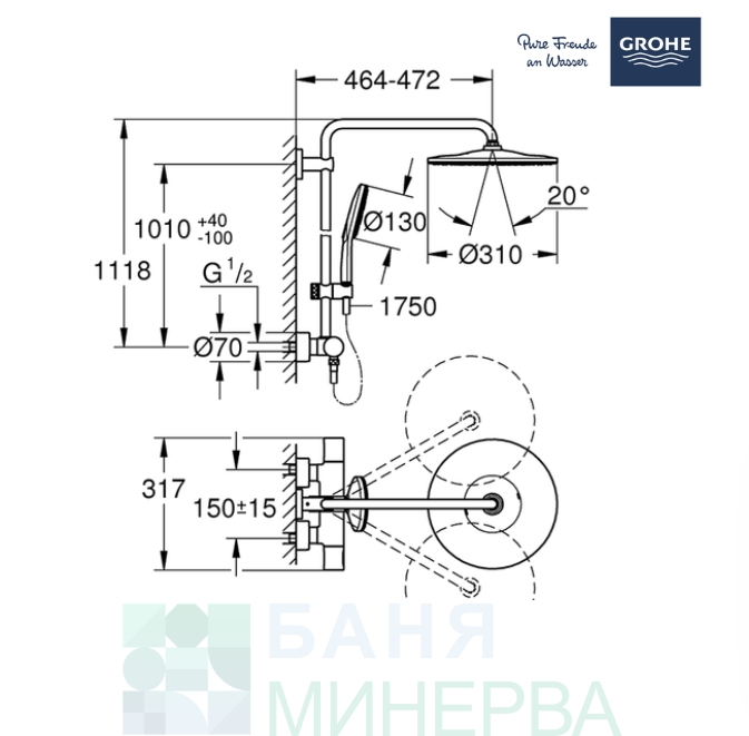 Код: GROHE 22119KF0 Rainshower SmartActive 310 душ система с термостат phantom black Категории: ,