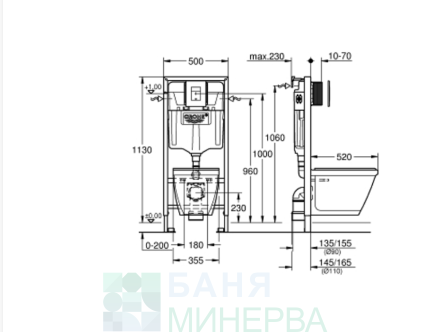 GROHE 103849SH00 Solido 4 в 1 Комплект Структура за вграждане и Тоалетна чиния