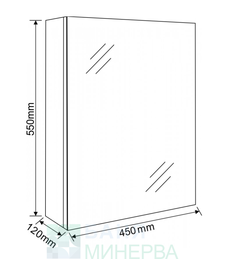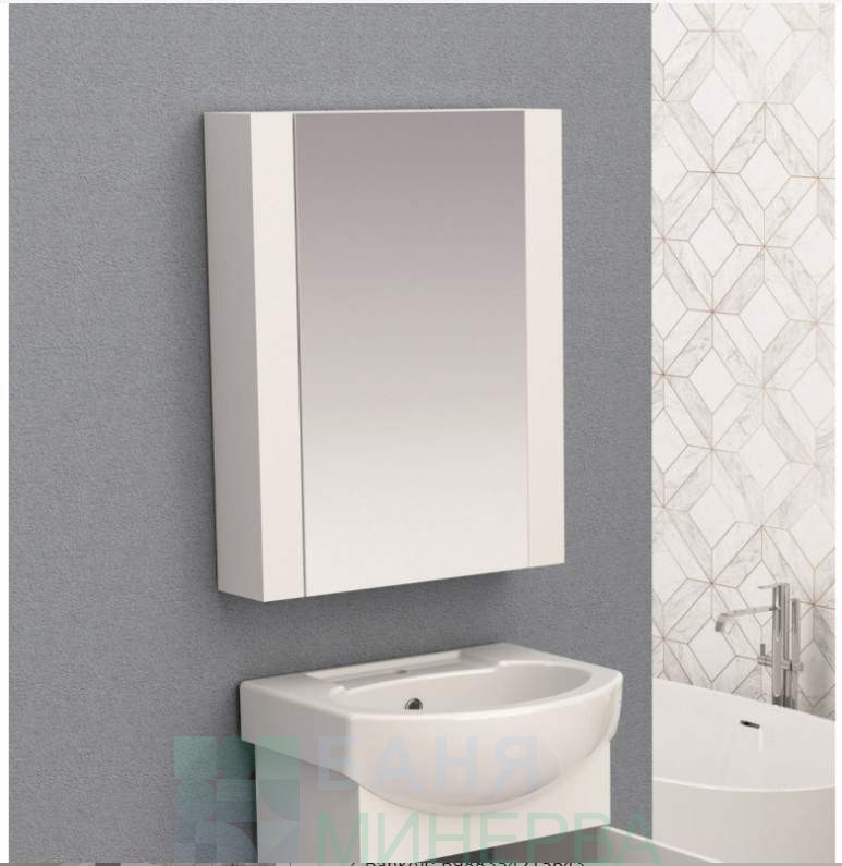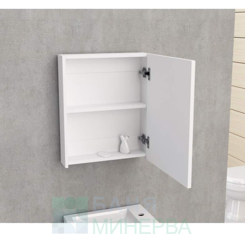 Горен огледален PVC шкаф за баня. Моделът е водо- и влагоустойчив . Пантите са със „soft close“ механизъм.