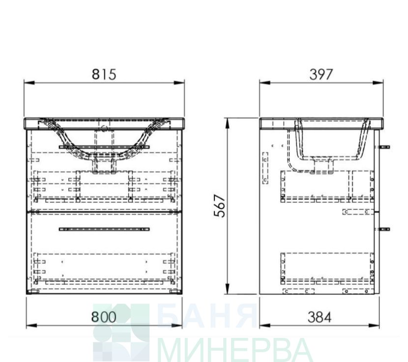 ROCA A852474532 Шкаф Unik Roma Plus Compact 815-395 с две чекмеджета и умивалник Черен мат
